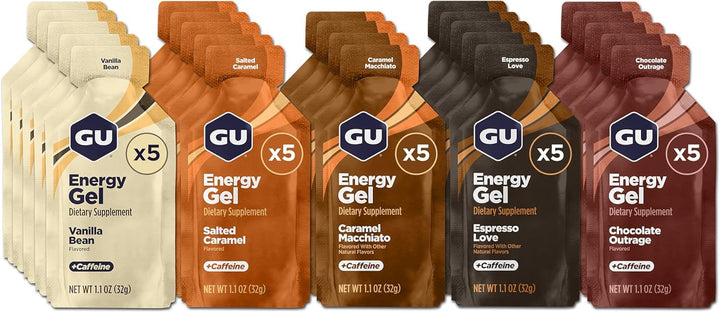GU Energy Original Sports Nutrition Energy Gel, Vegan, Gluten-Free, Kosher, and Dairy-Free On-the-Go Energy for Any Workout, 24-Count, Assorted Flavors