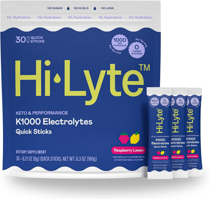 Hi-Lyte Keto K1000 Electrolyte Packets | Unflavored | Hydration Supplement Drink Mix | Boost Energy & Beat Leg Cramps | No Sugar, Stevia, Maltodextrin | 30 Servings