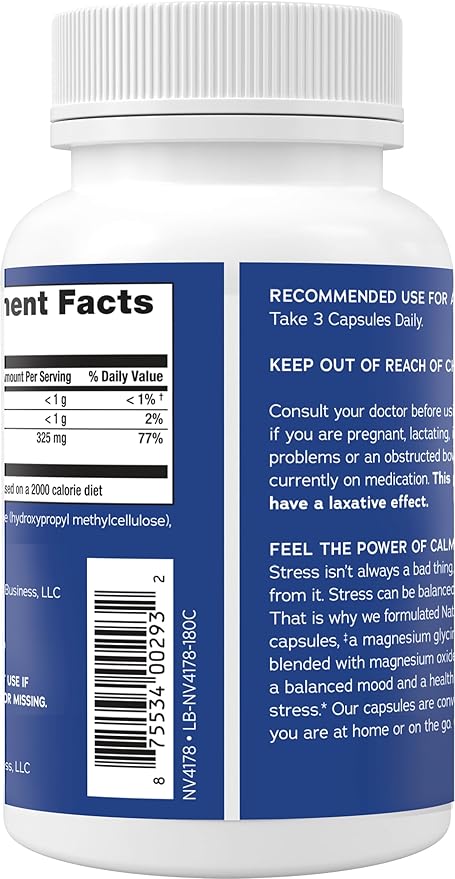 Natural Vitality Calm, Magnesium Glycinate Supports Bone, Muscle, Heart, & Nerve Health, Non-GMO, Vegan, Gluten Free 180ct