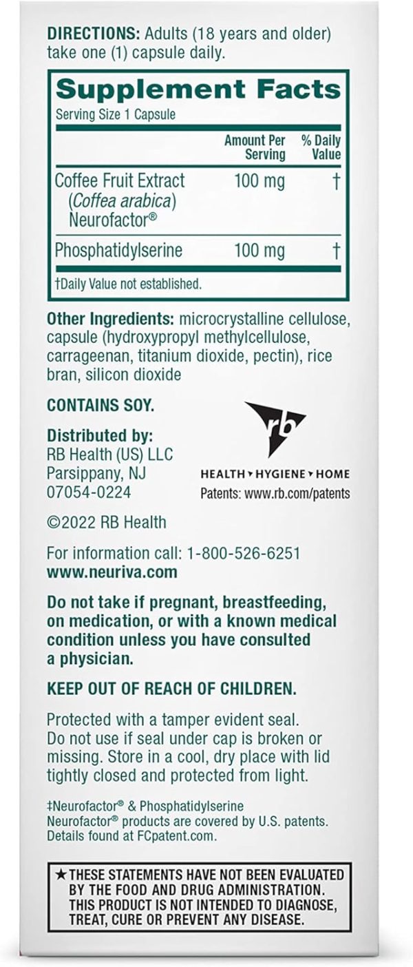NEURIVA Original Brain Supplement for Memory, Focus & Concentration + Learning & Accuracy with Clinically Tested Nootropics Phosphatidylserine and Neurofactor, Caffeine Free, 30ct Capsules